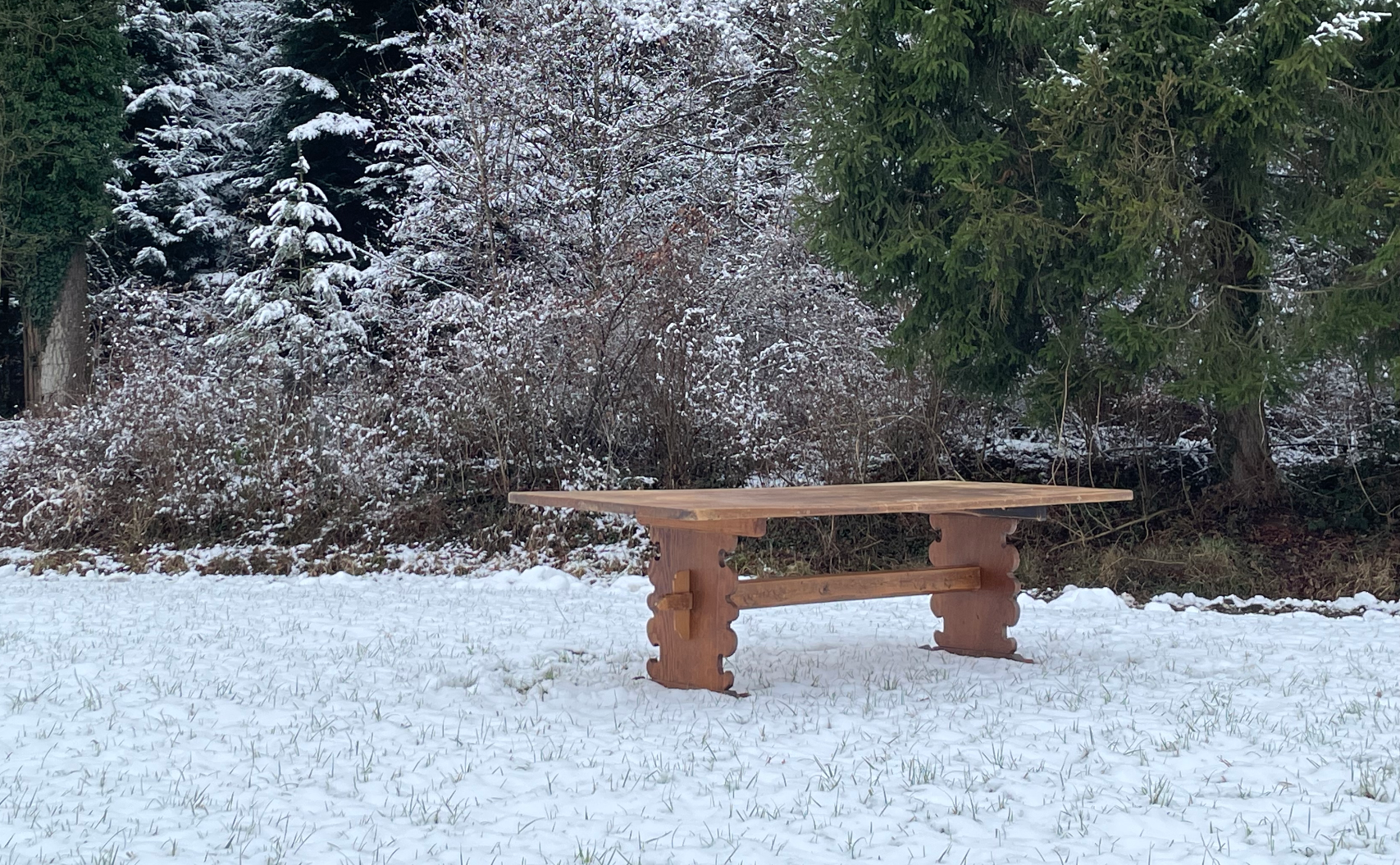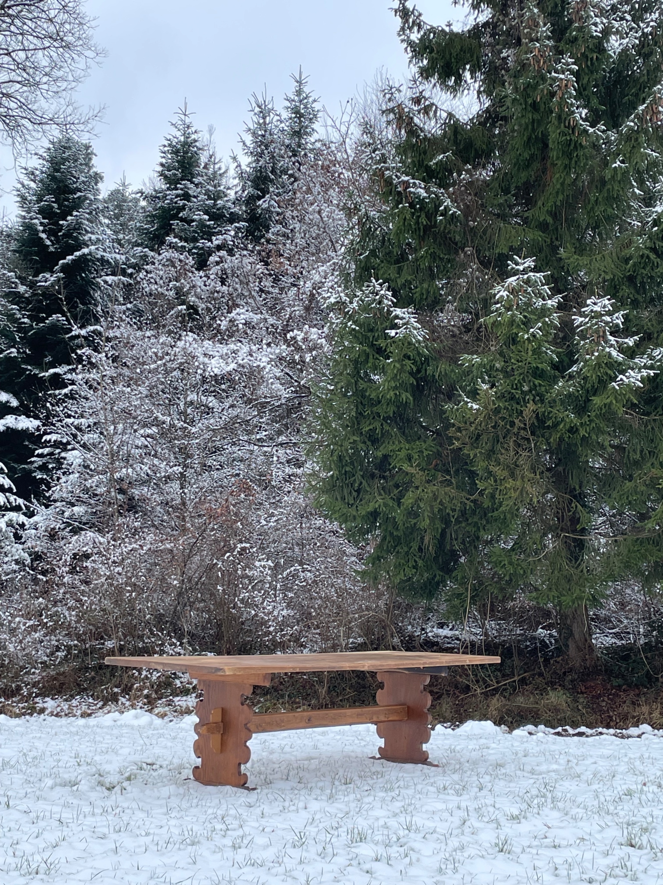 Was für eine Freude! Unser grosser Eichentisch, das Herz unserer Osteria in der Giesserei, hat den Umzug aus Basel gut überstanden und ist heil im verschneiten Winterthur angekommen. Er wird jetzt von einem Schreiner in Altikon sorgfältig restauriert, so dass er rechtzeitig zur Eröffnung im März bereit ist.